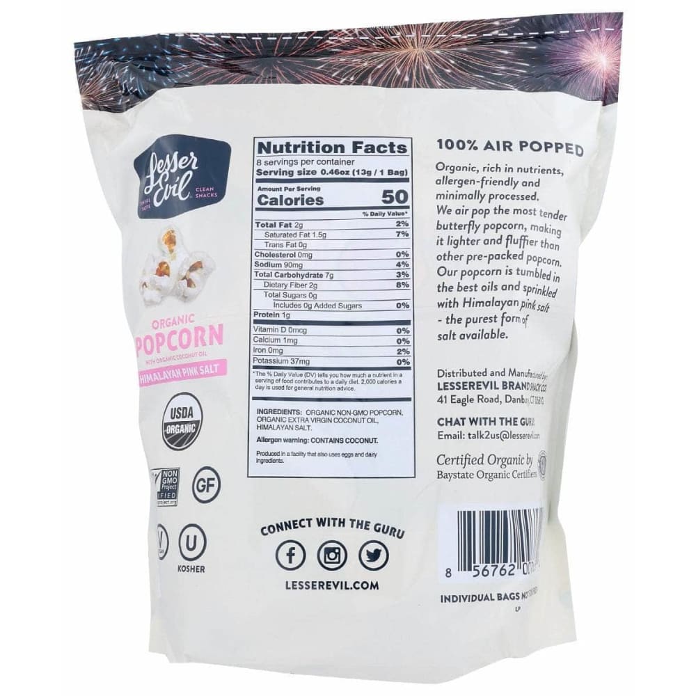 Lesser Evil Popcorn Himlyn Snck Pack, 8 Ea (Case of 4)
