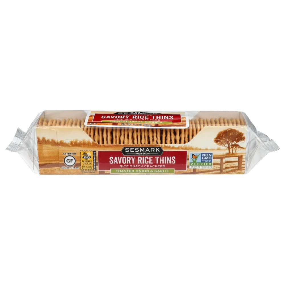 SESMARK Savory Rice Thins Toasted Onion and Garlic, 3.2 oz (Case of 4)