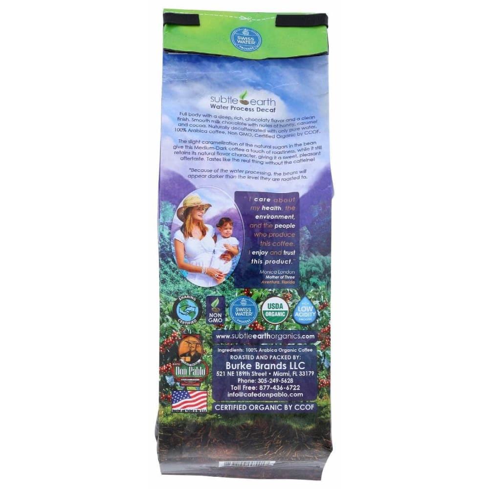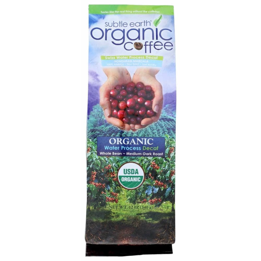SUBTLE EARTH ORGANIC: Whole Bean Swiss Water Decaf, 12 oz