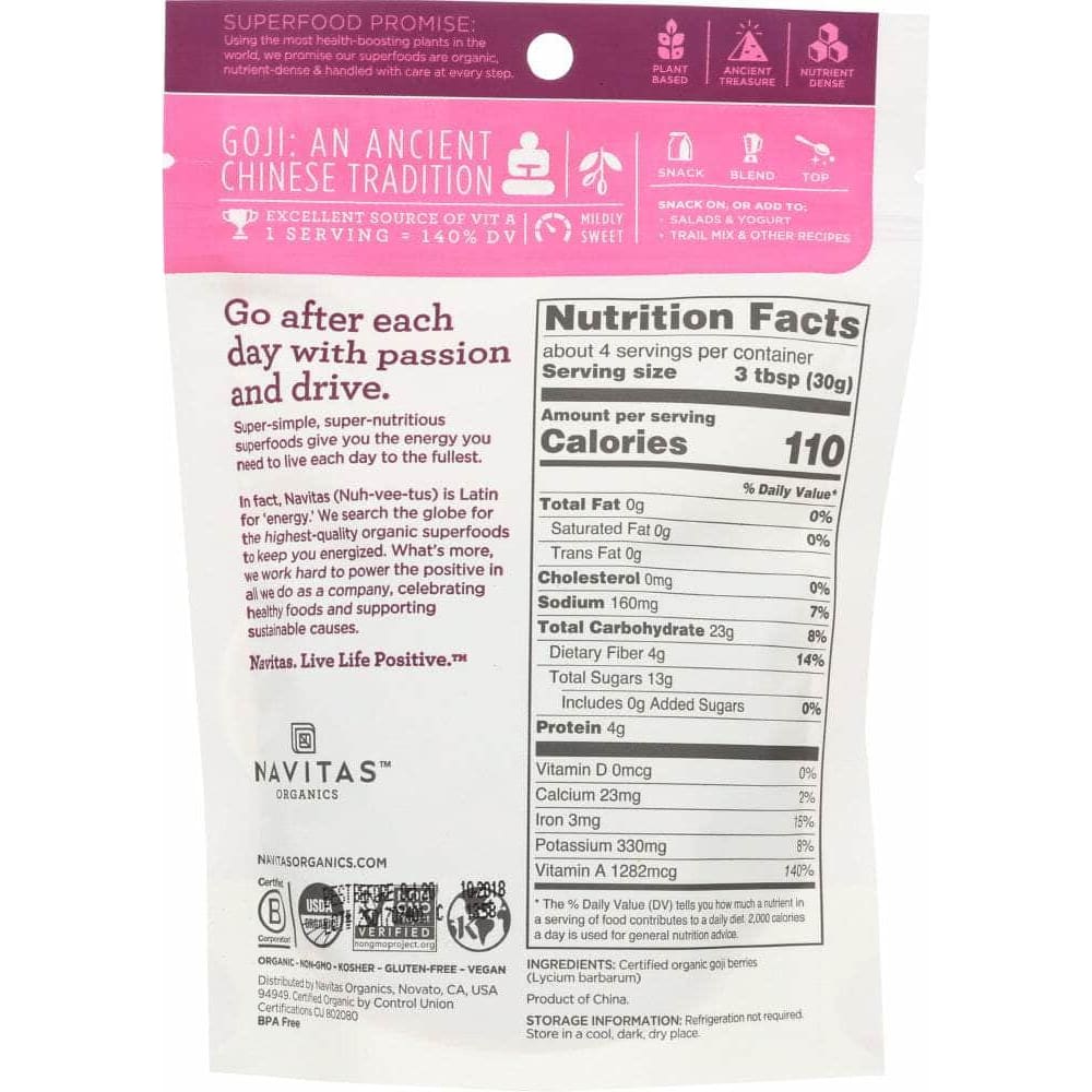 Navitas Organic Goji Berries, 4 Oz (Case of 2)
