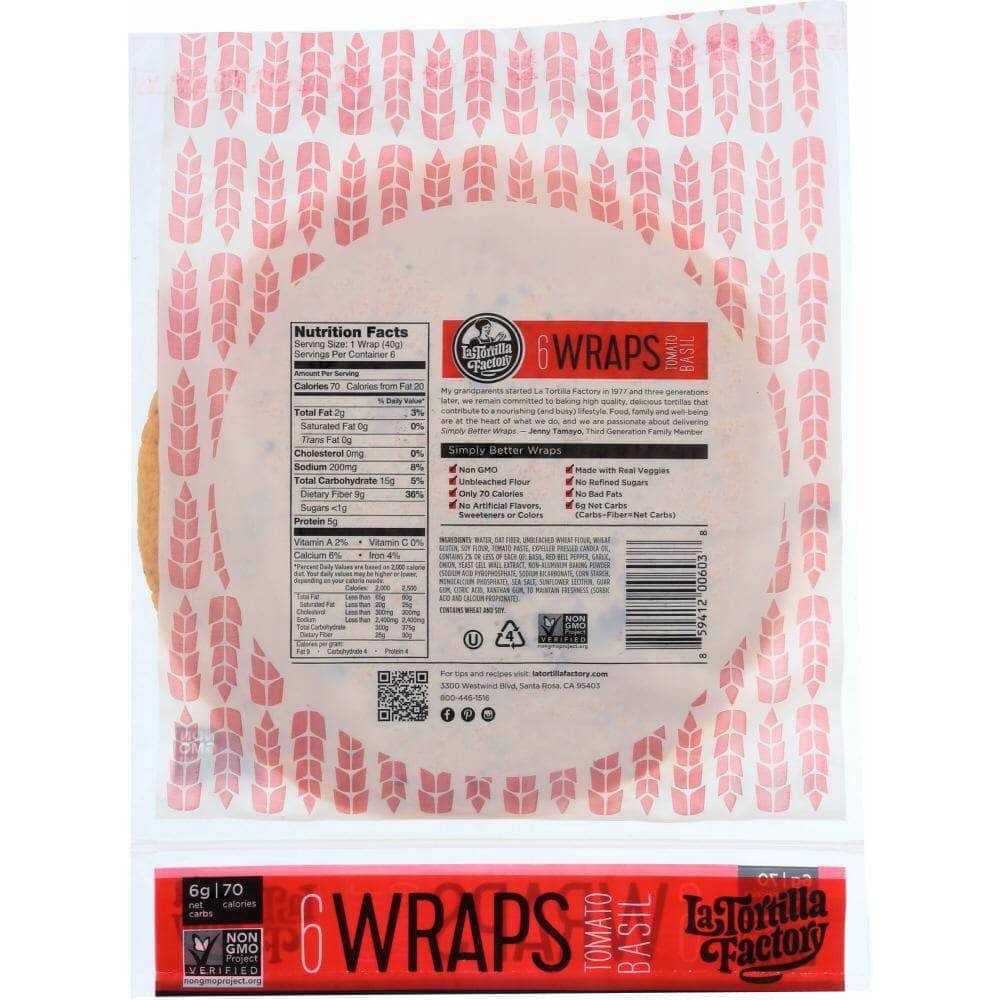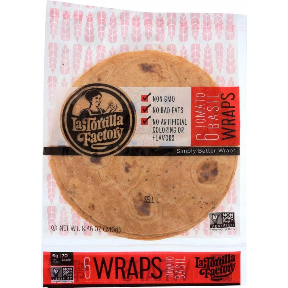 La Tortilla Factory Tomato Basil Tortilla Wraps, 8.46 oz (Case of 4)