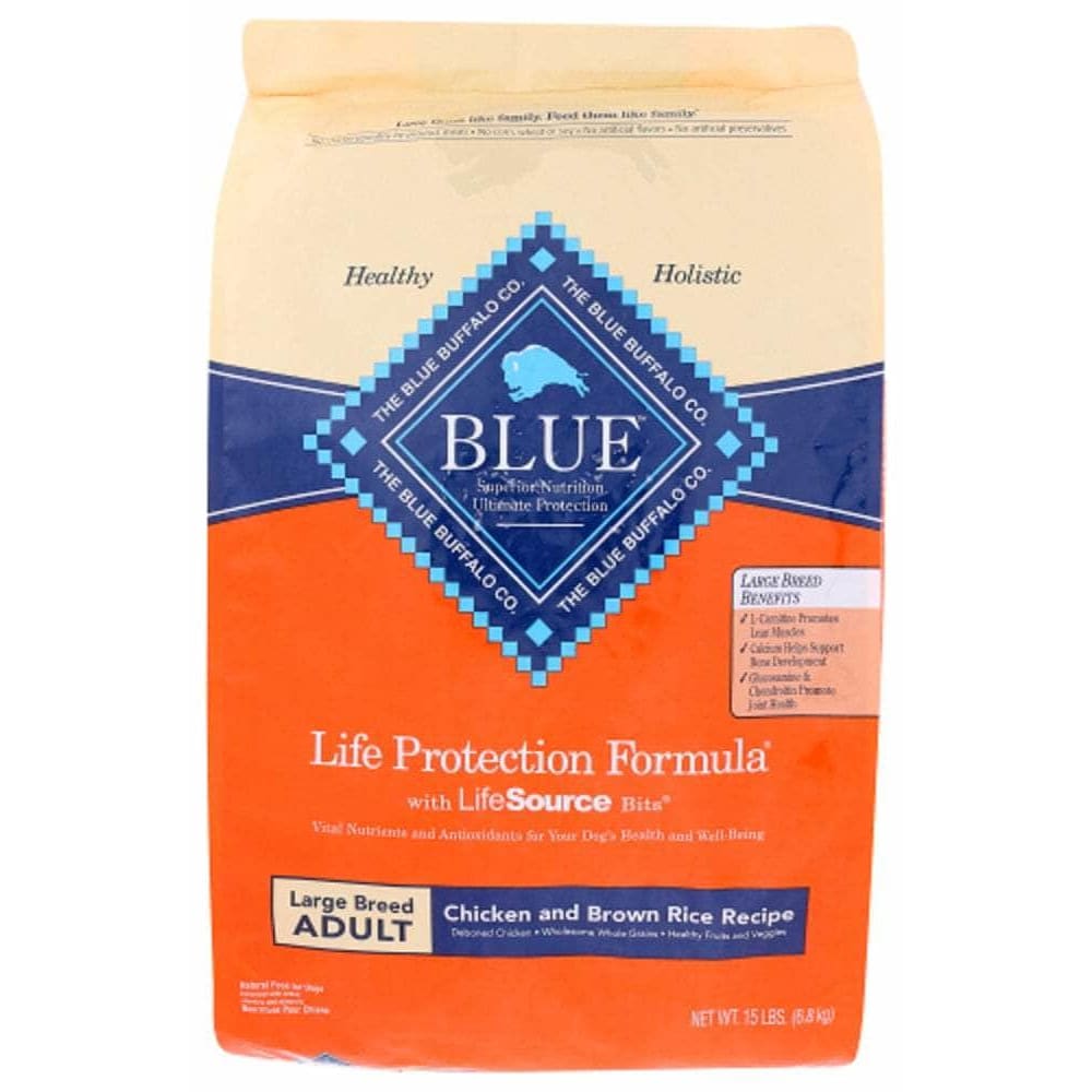 Formulated for the health and well-being of large breed dogs, BLUE Life Protection Formula is made with the finest natural ingredients enhanced with vitamins, minerals and other nutrients. Starting with delicious, high-quality chicken, it features antioxidant-rich fruits and veggies, wholesome whole grains, plus glucosamine and chondroitin to support the mobility needs of larger dogs.