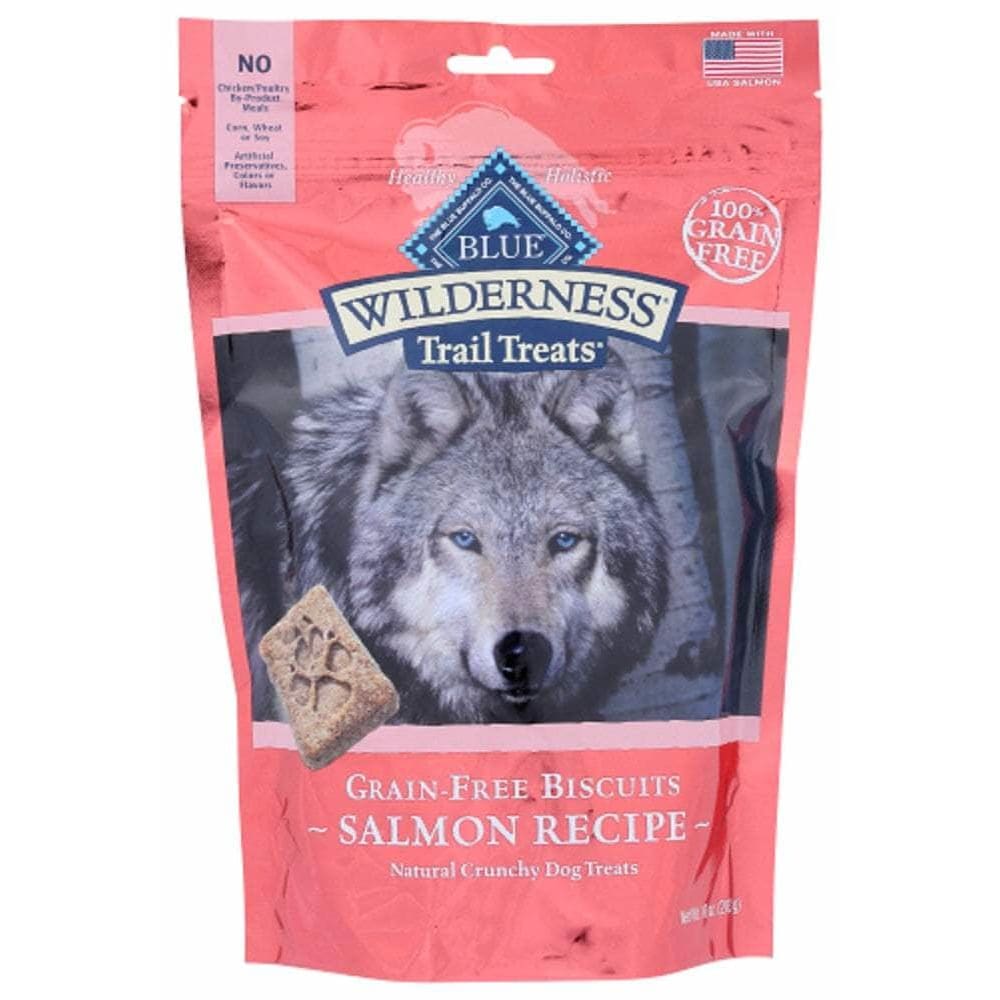 BLUE Wilderness Trail Treats Biscuits are crunchy treats for your meat-loving dog. They are made with the finest natural ingredients enhanced with vitamins and minerals like salmon, potatoes and flaxseed, and are free of the grains that contain gluten.