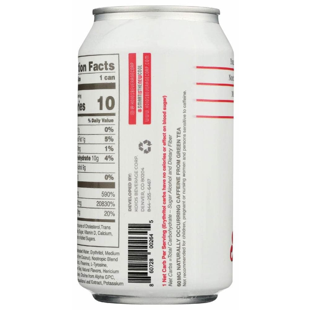 Natural Sparkling Brain Energy Infused With:MCT oilLion's Mane mushroomAlpha GPCL- TheanineL-Tyrosine60mg of Naturally Occurring Caffeine from Green TeaGinsengNaturally Occurring ElectrolytesVitamins B12 and B6NO ARTIFICIAL colors, flavors, sweeteners, or preservativesOnly 10 calories per serving (can)! KOIOS has the flavor of a delicious soda, providing you with all the health benefits and a mental spark without sacrificing flavor or experience!