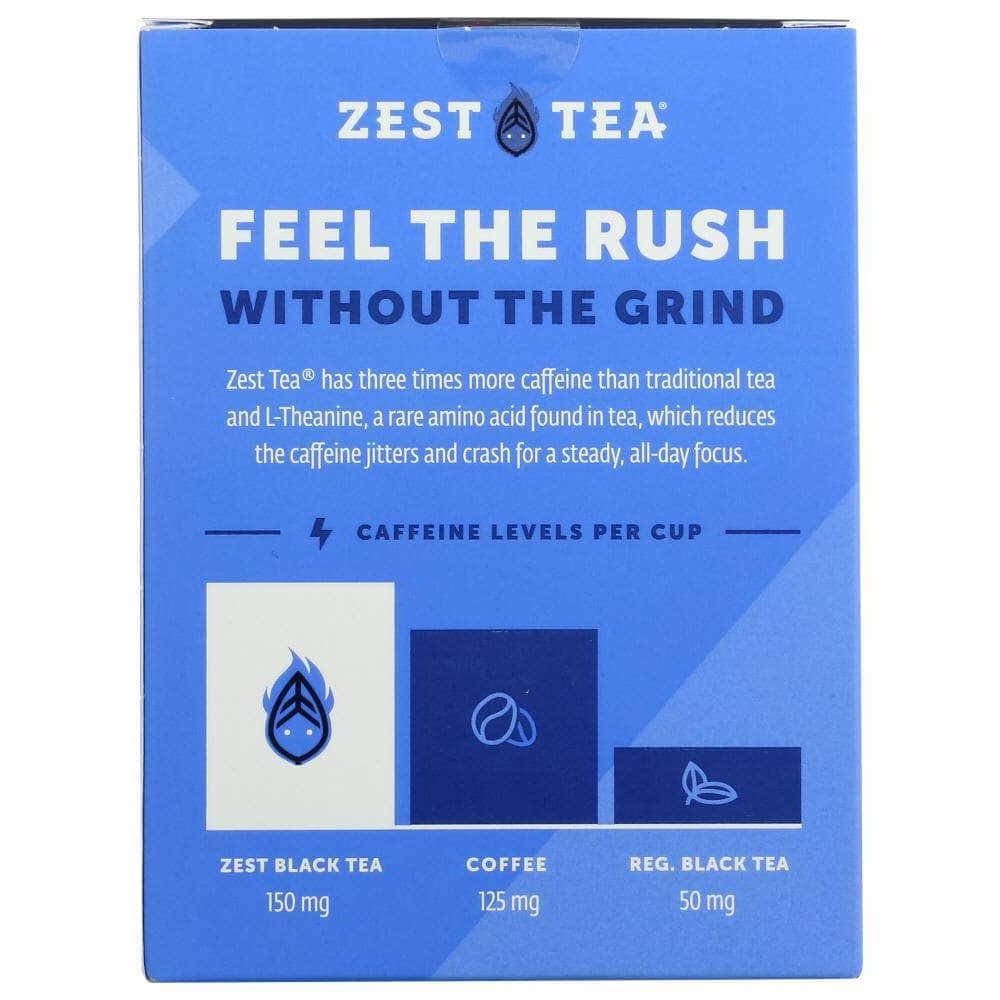 Zest Tea has three times more caffeine than traditional tea and L-Theanine, a rare amino acid found in tea, reduces the caffeine jitters and crashes for a steady, all-day focus.