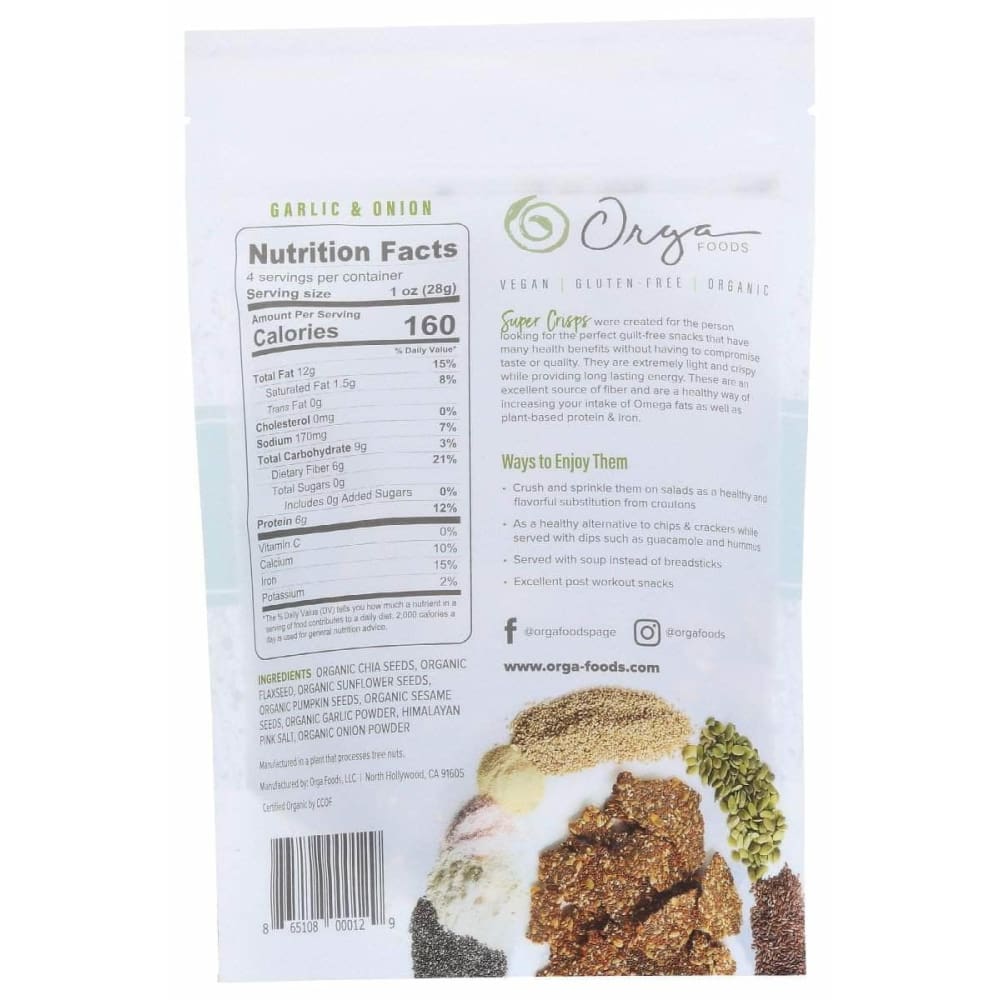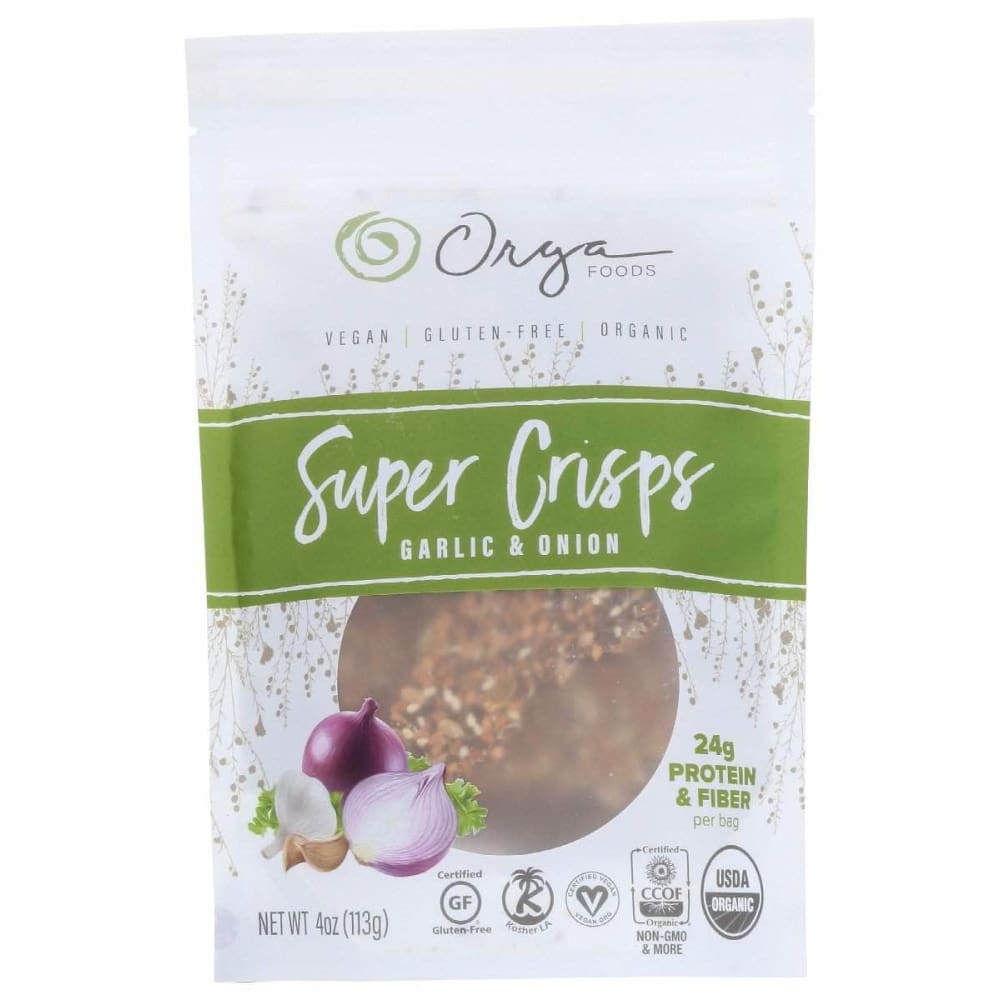 The Garlic & Onion Orga Super Crisps were created for the person looking for the perfect guilt-free snack that has many health benefits without compromising taste or quality. The Garlic & Onion Super Crisps are made using only 5 different organic superfood seeds, garlic, and onion. They are gluten-free, vegan and Non-GMO. They are extremely light and crispy while providing long lasting energy. These are an excellent source of fiber and are a healthy way of increasing your intake of Omega fats as well as plant-based protein & iron. You will not want to put the bag back down once you open it!