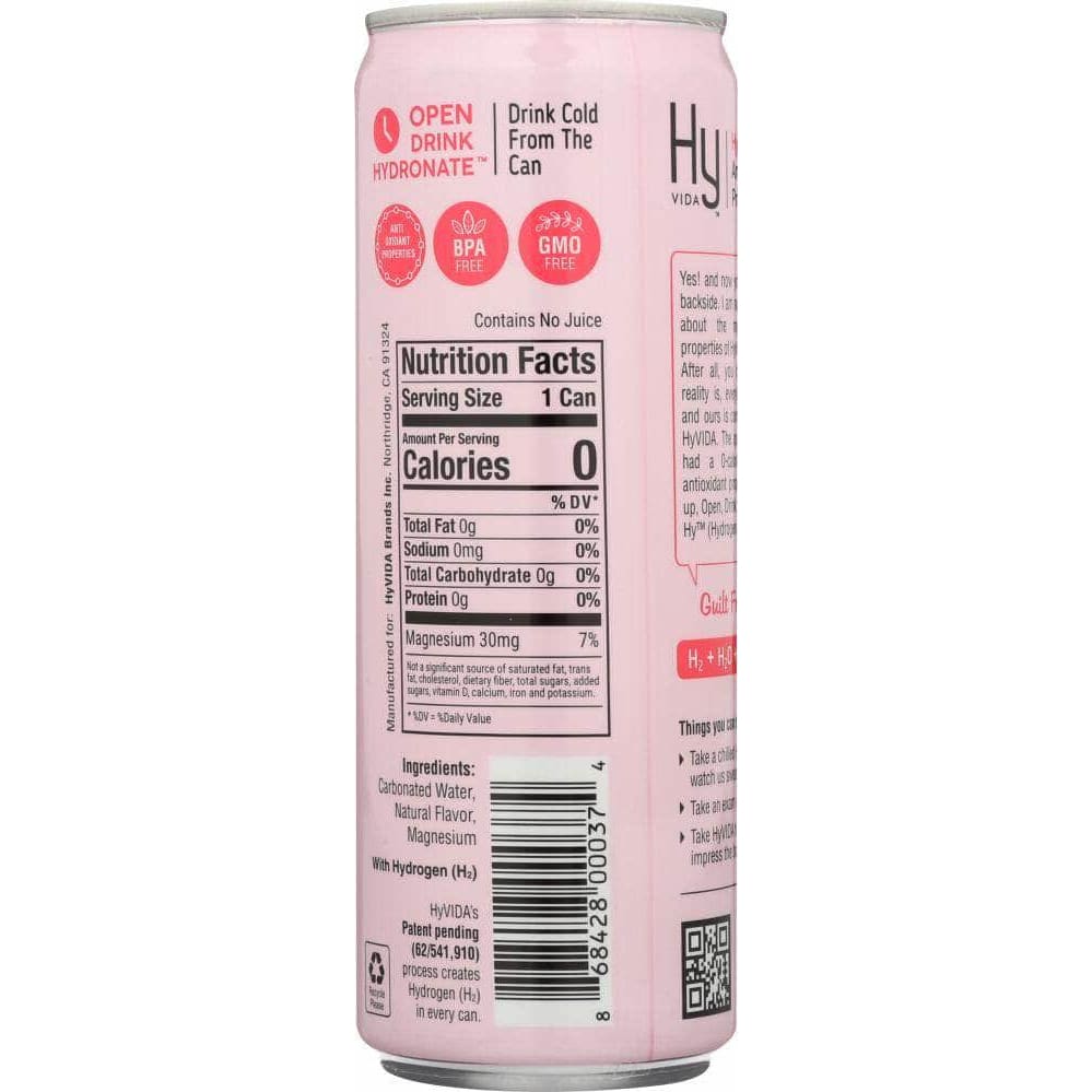 HyVIDA Hydrogen Infused Sparkling Water Beverage is the World’s First Hydrogen Infused Sparkling Water! HyVIDA Raspberry has ZERO calories, ZERO sugar, ZERO sweeteners and ZERO caffeine. The only thing HyVIDA Raspberry is FULL of are flavors that are Certified Organic, making all of our products GMO-free as nature intended.