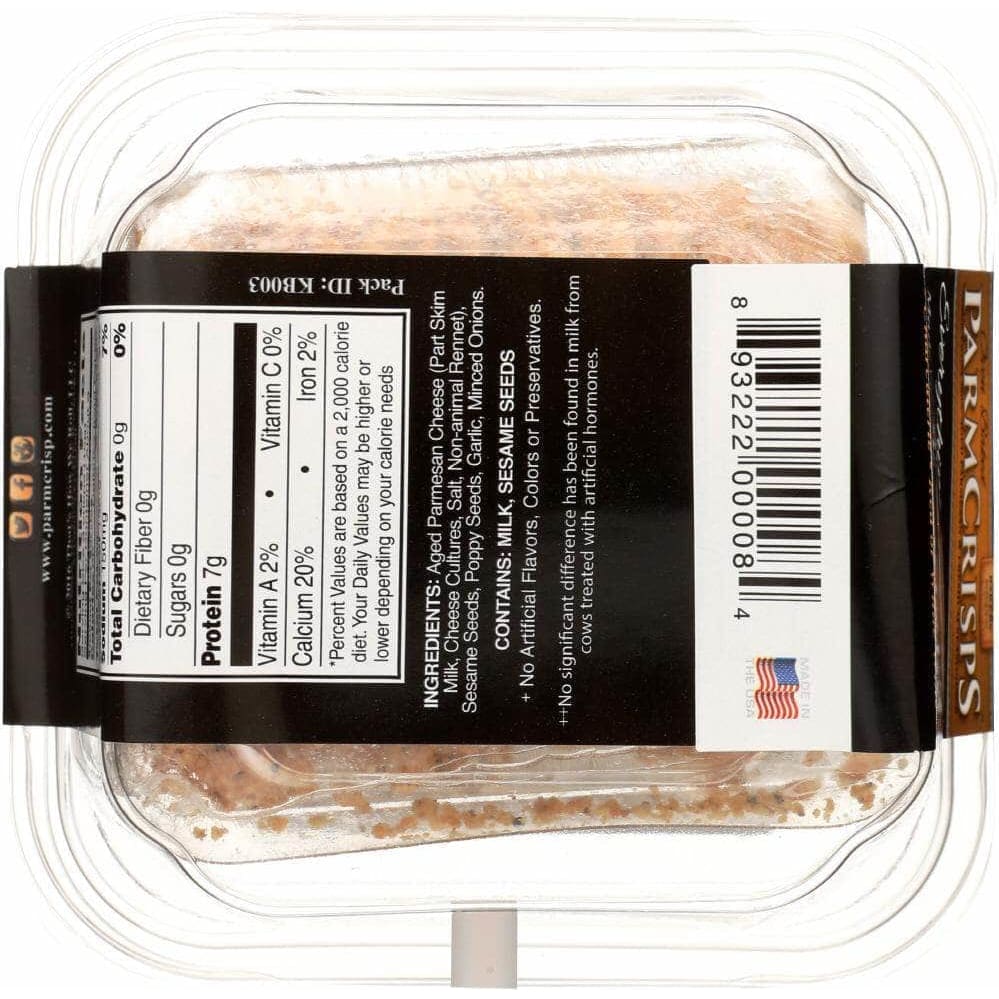 Everything ParmCrisps™ are artisan crafted, crunchy crisps made entirely from 100% aged Parmesan cheese. We add premium all natural sesame seeds, poppy seeds, garlic, and minced onion then oven bake our crisps in small batches.