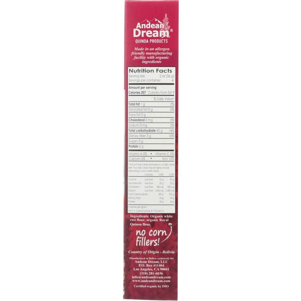 Royal Quinoa, a super food, is rich in protein, vitamins, minerals, and essential amino acids.Andean Dream Quinoa Pasta is made with organic Royal Quinoa, the finest quality in the world, found only in the Bolivian Andes.As a member of the Fair Trade Federation, we source our quinoa from indigenous farming families and then send it directly to our dedicated manufacturing facility, free from gluten, dairy, eggs, soy, corn, and nuts.Enjoy Andean Dream Quinoa Pasta for its delicious flavor, high nutritional content, and our commitment to bettering the lives of others, one meal at a time.