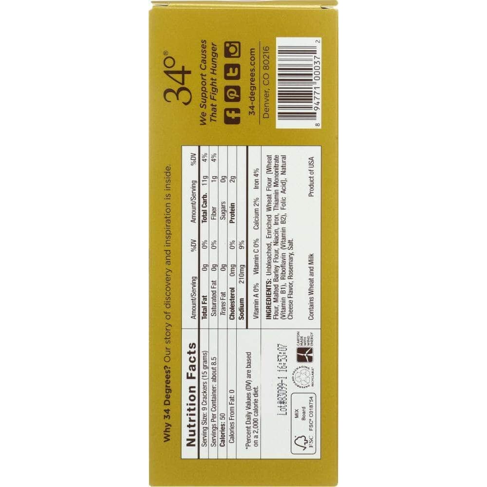 34 Degrees Rosemary Crispbread, 4.5 oz (Case of 4)