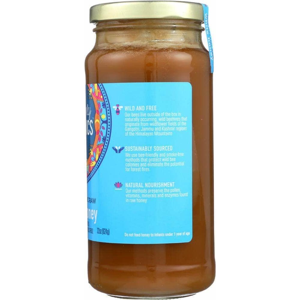 100% Organic Raw White HoneyOur bees live outside of the box in naturally occurring, wild beehives that originate from wildflower fields of the Gangotri, Jammu and Kashmir regions of the Himalayan Mountains. This delicious honey opens your senses to a multitude of exotic flowers as it lingers on the palate. White in color, velvety in texture with a smooth, sweet taste. Perfect for anything you use honey for like spreading on fresh baked breads, or just eating by the spoonful.
