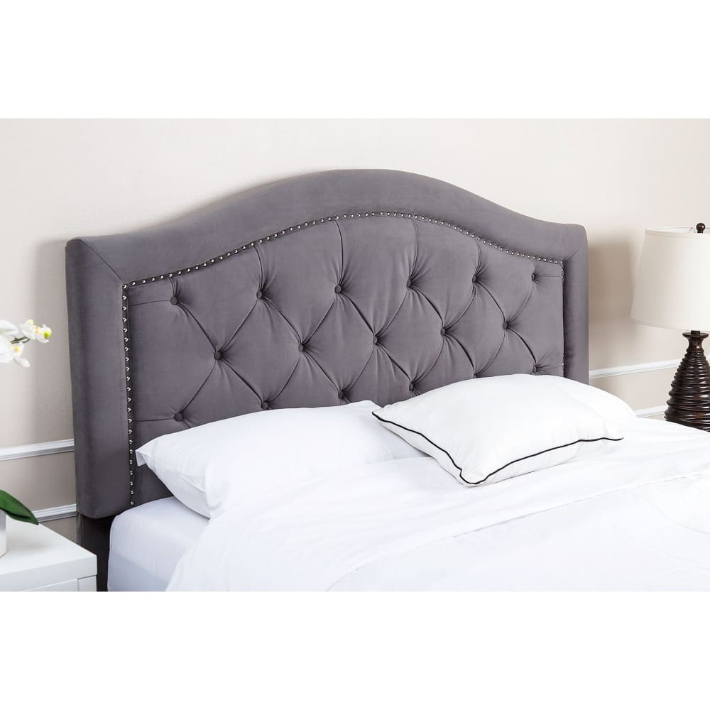 Transform your bed into an elegant showpiece with an Abbyson Living Hendry Velvet Full/Queen-Size Headboard. Button-tufting across the piece and nailhead trim along the edges create a classic design imbued with style and refinement. The polyester velvet upholstery provides a soft background for reclining and lounging.