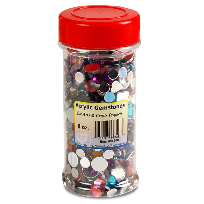 Enjoy a premium mix of different sizes, shapes, and colors of sparkling acrylic gemstones. Adults and children find a multitude of uses for these acrylic gemstones. Decorate scrapbooks, picture frames, cell phones or make fun, unique jewelry. The possibilities are endless! Teachers love to stock up on these shiny jewels for their classroom. They are safe and easy to glue. Students are always finding innovative ways to use them. These acrylic gemstones are ideal for making creative gifts around the holidays. Give your friends and family a custom ornament or holiday card that is sure to stand out from the rest! Sizes ranging from 5/16" - 1/2". Each pack includes 8 ounces.