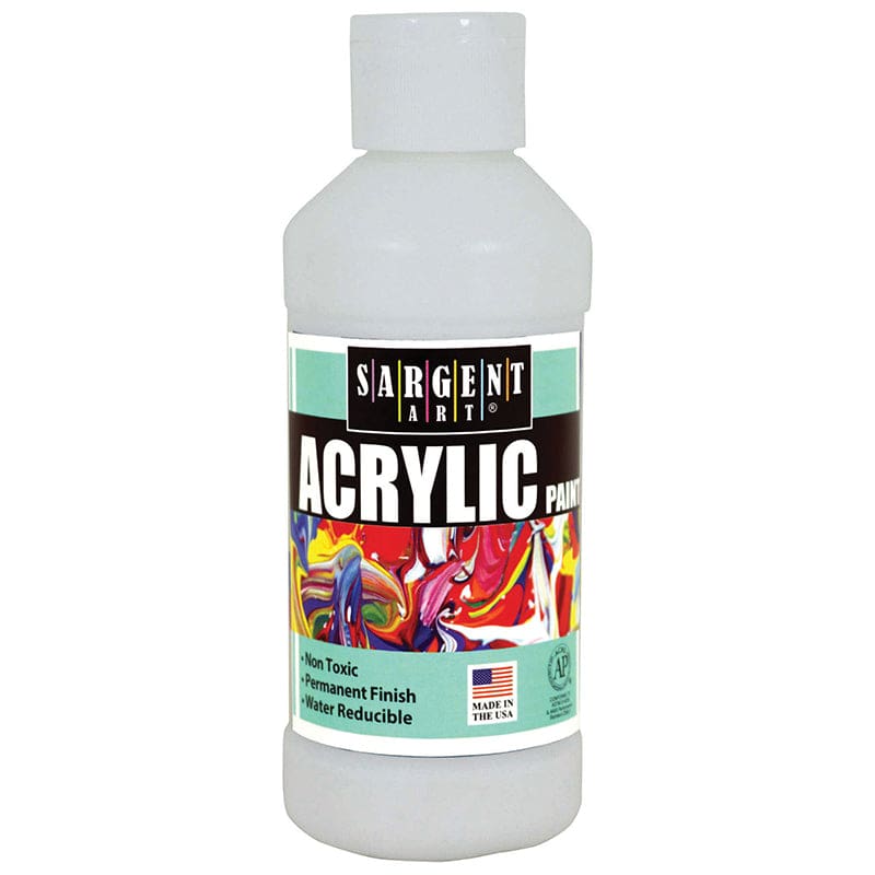 Sargent Art® Acrylic paints are vividly colored, water-resistant after drying, and can be used on almost any surface. Ideal for hobbies, crafts, and classrooms. Provides good coverage and a permanent finish. Cleans up easily with soap and water before drying. Goes well with Sargent Art canvas, canvas boards and canvas pads. Non-toxic and conform to ASTM D 4236. Includes 8 oz. of paint in an opaque bottle with flip-top cap.