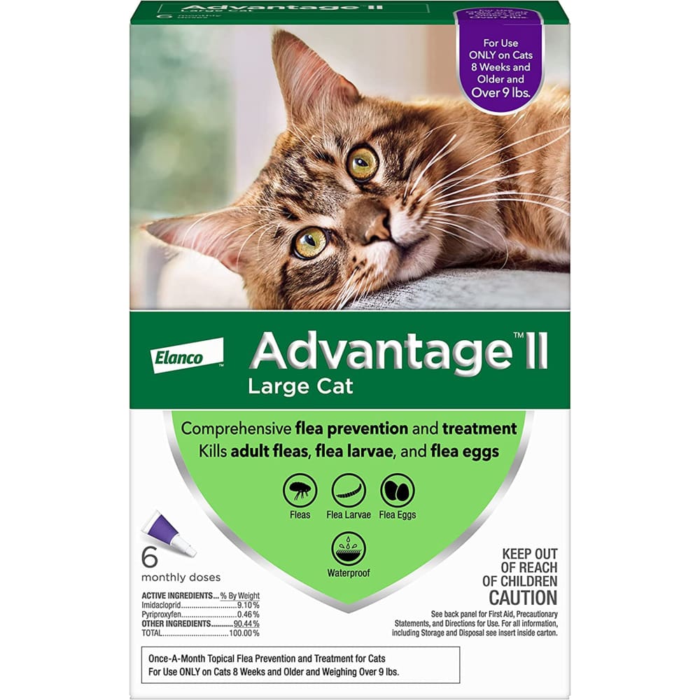 Fight the misery of biting fleas with Advantage II. A monthly topical flea prevention and treatment for cats and kittens (at least 8 weeks old and 2 lbs. or more) that kills fleas through contact so they don?t have to bite your cat to die.