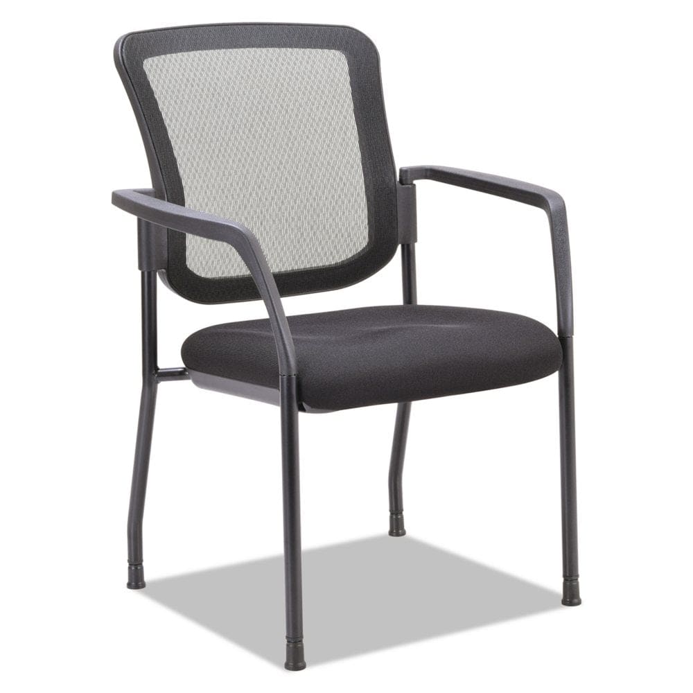 Cool breathable mesh back upholstery stacks up to five high. Includes both glides for fixed use and casters for mobility. Provides long lasting support. Recommended Applications: Guest, Waiting Room, Reception, Lobby, Stacking, Seat/Back Color: Black, Arms Included: Yes, Arm Style: Closed Loop.