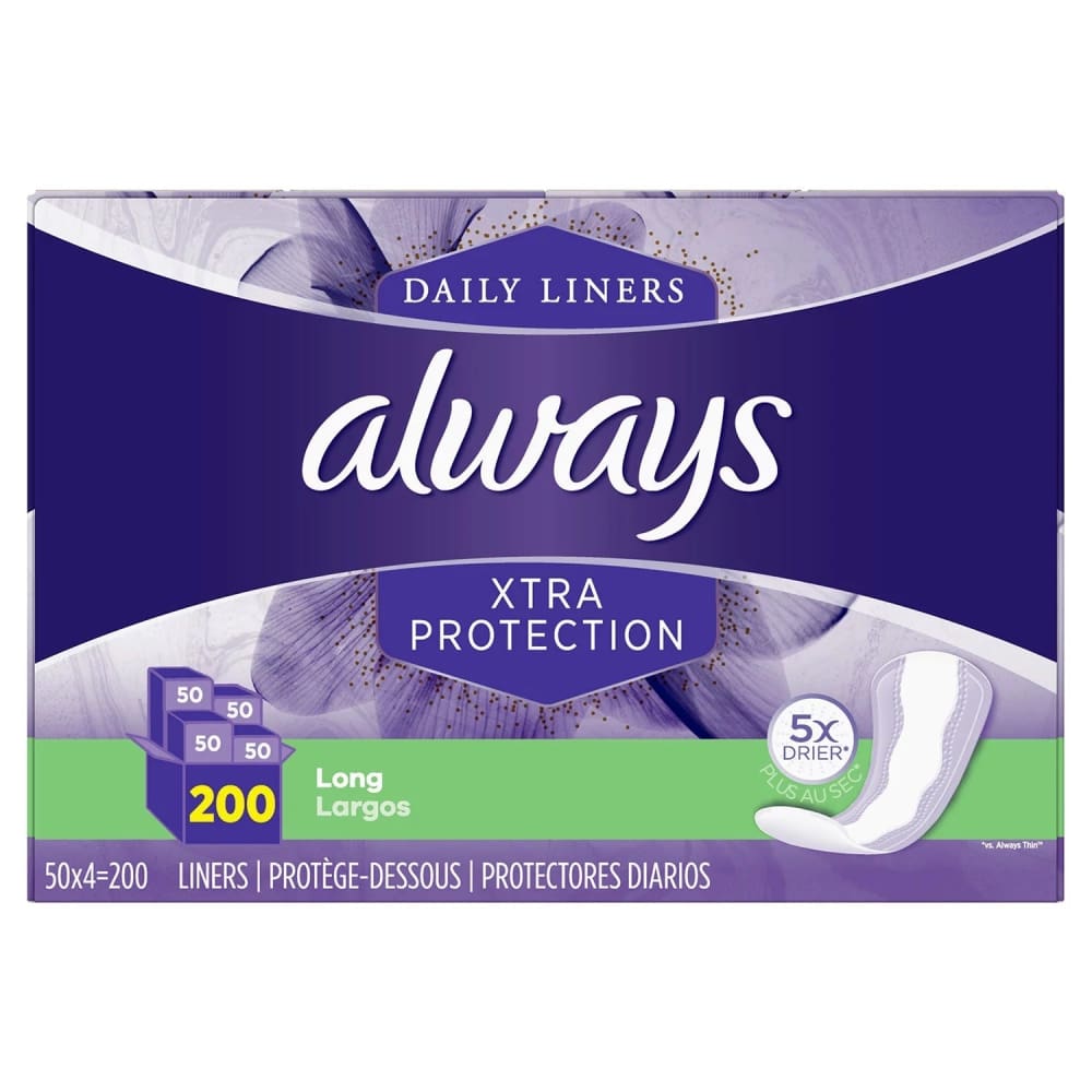 Always Anti-Bunch Xtra Protection Daily Liners, Long, Unscented (200 ct.)