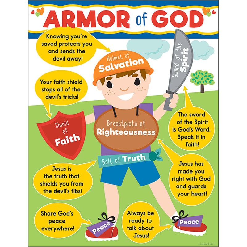 The Armor of God Chart is a great early learning tool and displays a Scripture-based message to encourage children in their spiritual journey. This chart measures 17" x 22" and can be used year-round.