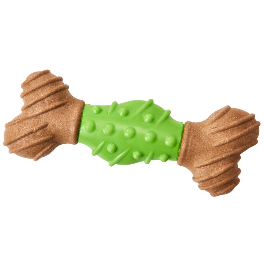 Bam-Bone Dental Bone Dog Toy Green-Brown 6in