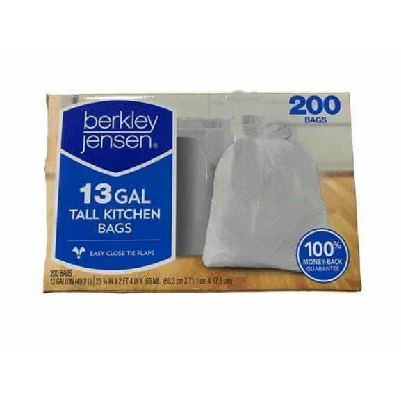 Get the most out of your trash bag. For use in the kitchen, these Berkley Jensen 13-gal. white trash bags offer easy-to-close flaps for quick tie-ups.