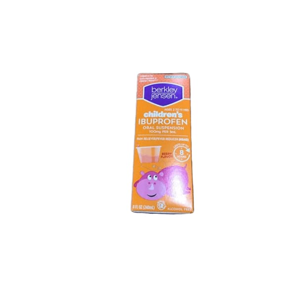 Berkley Jensen Children's Berry Flavor Ibuprofen reduces fever and aches and pains in children ages 2-11. It provides up to 8 hours of relief. Included are one 8-oz. bottle.