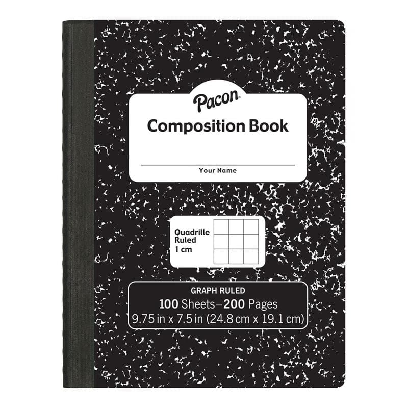 This Hard Cover one-subject composition book is great for drawing graphs, illustrations and more during note taking and journaling. Each sheet is 1 cm quadrille/grid ruled on both sides. Each composition book measures 9-3/4"H x 7-1/2"W with 100 sheets and 200 pages. Recyclable.