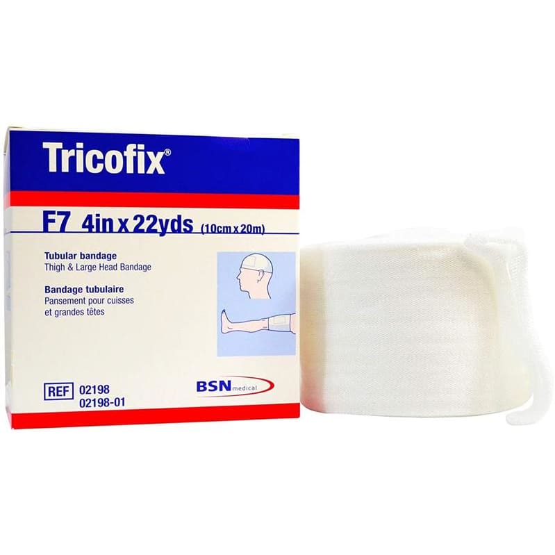 Tricofix Tubular F7 Bandage for thighs and small heads. Protects the skin surface under compression garments, zinc gel or adhesive bandages. Useful as skin protection under plaster of paris or synthetic cast and as a lining for lymphedema wrapping to reduce irritation. Made from lightweight 100% cotton. Size: 4" x 22 yards. 10/case.