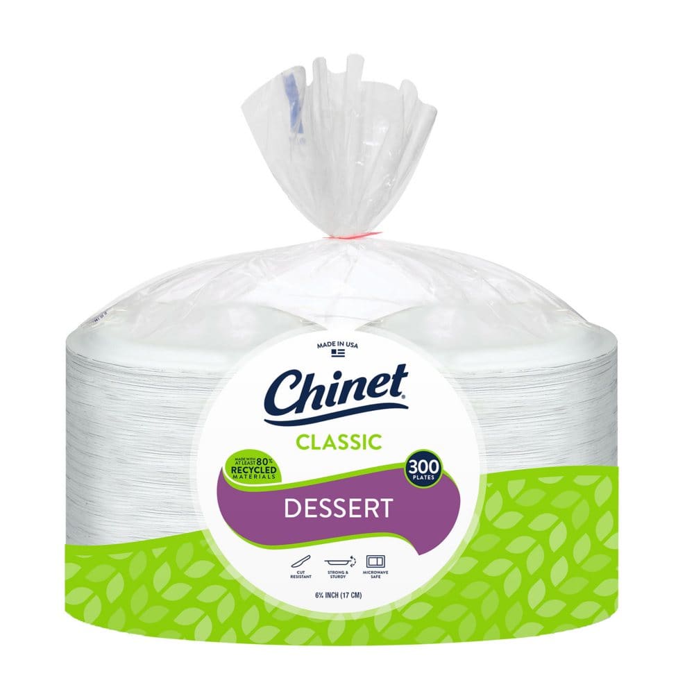 Anyone who appreciates a well-made plate that also happens to be aesthetically pleasing. Since this bulk pack comes with a total of 300 disposable plates, it's ideal for serving snacks and desserts to guests at large gatherings. They're also a staple in homes across the country. Sometimes people are too busy to wash dishes. No need to panic, just grab some lovely Chinet paper plates and you don't have to worry about wasting time at the kitchen sink again! At 6.75", these disposable plates are ideally sized for snacking at home, as well as any small meal, like a burger, or a single lasagna square or grilled chicken atop greens. No matter how heavy or saucy your food may be, Chinet dessert plates won't leak or tear under the pressure.