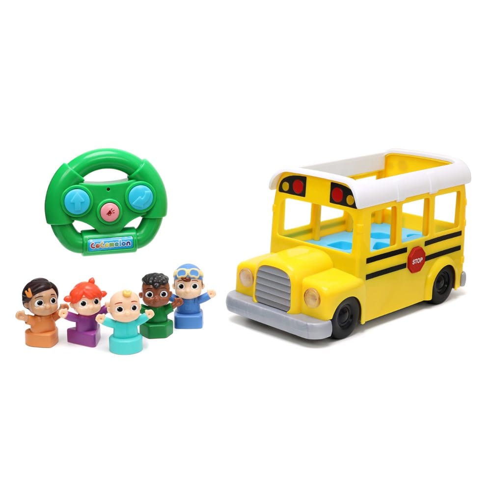 Enjoy learning-play as the vibrant colorful figures stand on recognizable shapes. Little ones can match the shapes and pop them into the School Bus where they will fit perfectly, a great tool to teach them about pattern recognition. The bright Stop sign on the bus functions as a Try-Me button. This Cocomelon School Bus Remote Control Vehicle is suitable for children ages 2 and above.