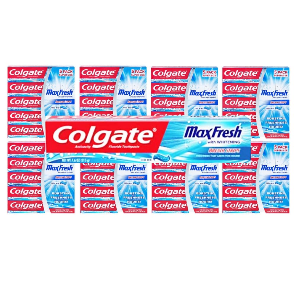 Colgate MaxFresh Toothpaste with Whitening Mini Breath Strips give you the confidence that only fresh breath and healthy teeth can provide. The delicious minty fresh flavor of Colgate Max Fresh toothpaste will leave your mouth feeling clean. This five-pack of MaxFresh toothpaste allows you to stay stocked up and your toothbrush topped off.