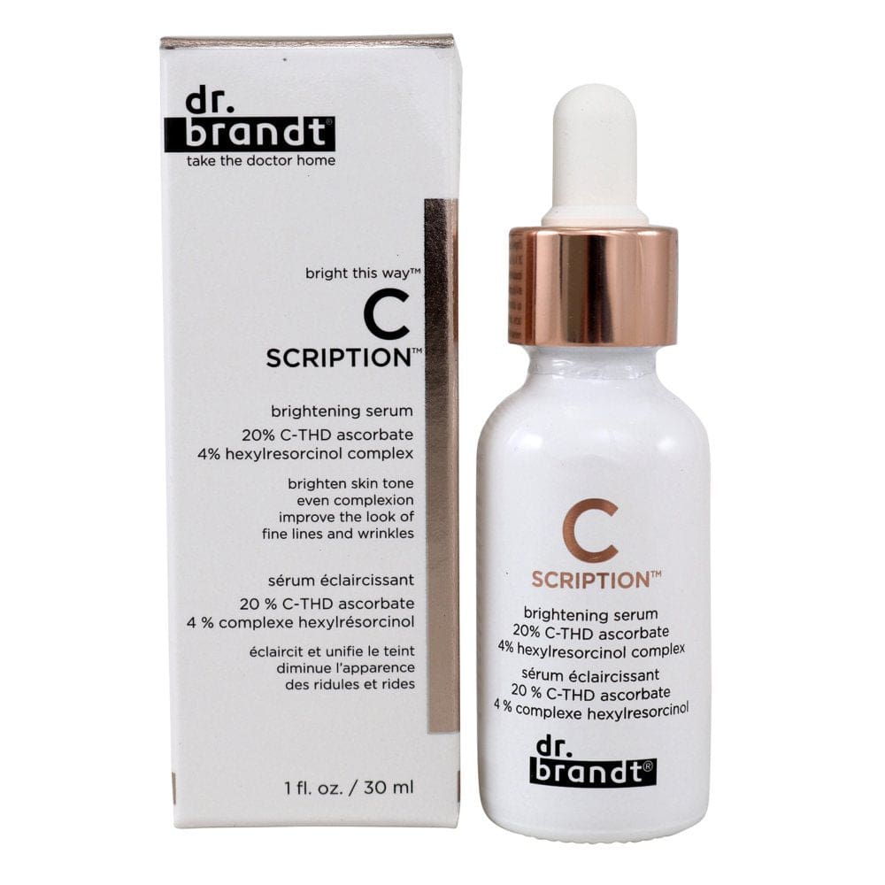 Enjoy even skin tone and texture with Dr. Brandt C Scription Brightening Serum. This brightening serum reduces the appearance of dark spots and wrinkles while protecting skin from free radicals and boosting skin's natural collagen production.