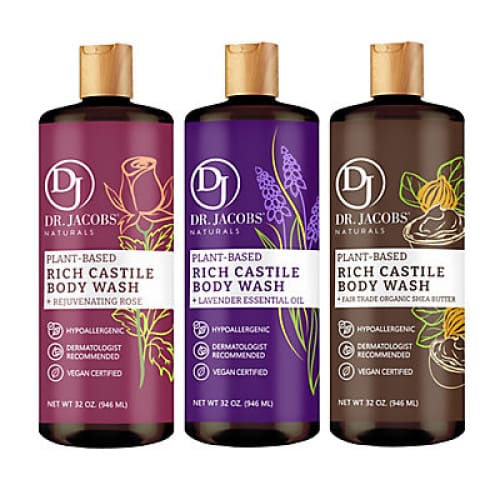 Dr Jacobs Castile Body Wash, 3 pk./32 oz. - Rose, Lavender, Shea Butter