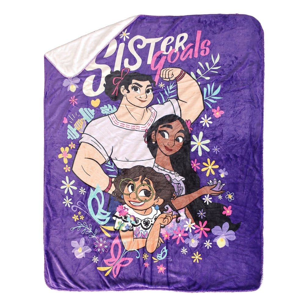 Decorate your room with this amazingly comfortable and attractive Encanto Cloud Throw Blankets with Faux Fur reverse by The Northwest Group. The front features a fun image of your three favorite sisters from the movie Encanto with a headline of "Sister Goals". With a faux fur reverse, this plush and cozy Cloud Throw Blanket with Faux Fur reverse by The Northwest is the perfect accessory for any bed, couch or road trip. The front of this 50" x 60" throw blanket is extremely soft, cozy, and ultra-comfortable. The back is an incredibly soft and colorful faux fur with a whipstitch around the entire throw. Lay down and fall fast asleep while staying warm with this amazing Cloud Throw Blanket with Faux Fur reverse by The Northwest Group.