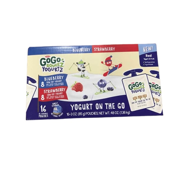 GoGo Squeez Yogurt on the Go Blueberry & StrawBerry, 16 Pouches. 3 oz Each.