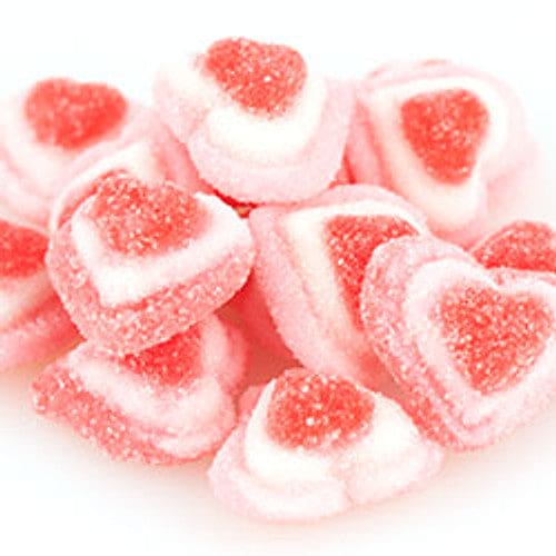 Triple yummy gummi goodness. It's all triple with these Gummi Triple Hearts. Central heart filled with cherry jelly and surrounded by gummi hearts - pink and white.