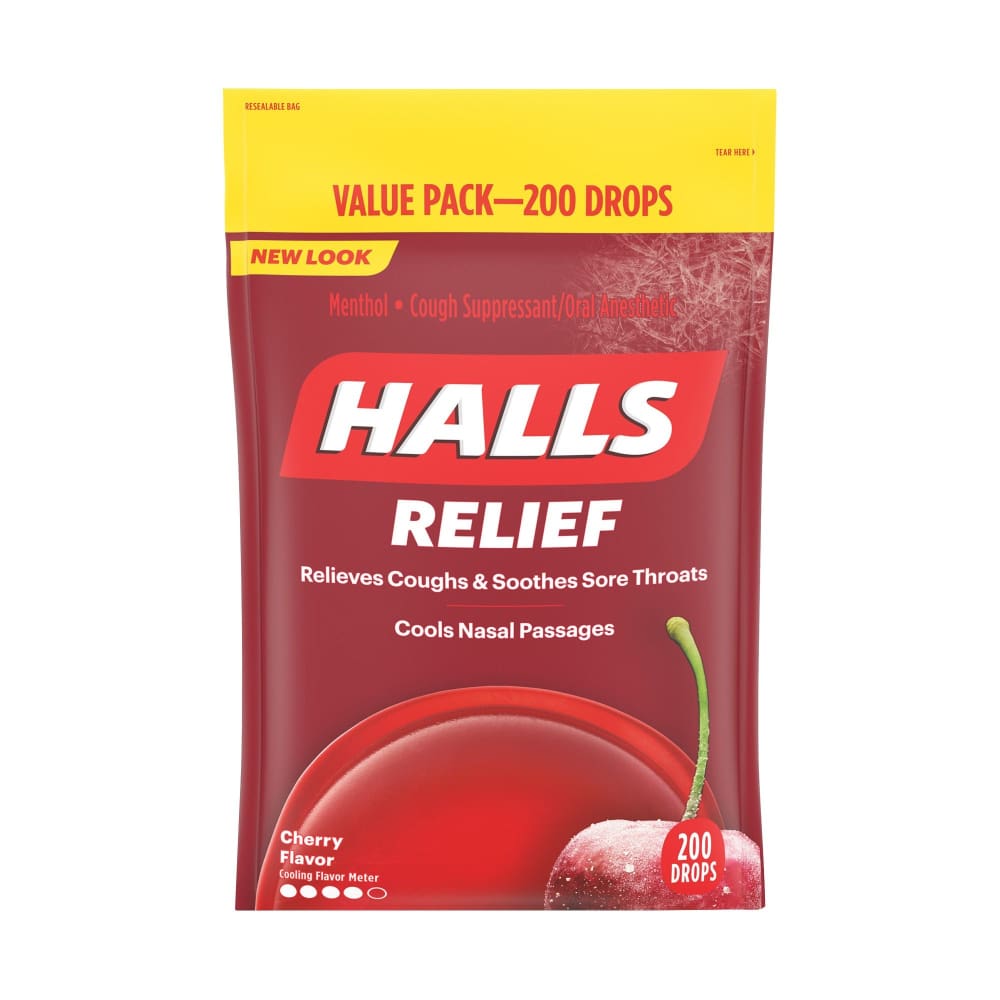 Halls cough suppressant drops fight coughs, soothe sore throats and cool nasal passages with a Triple Soothing Action formula. Each cherry drop is only 15 calories and contains just 4 grams of carbohydrates.