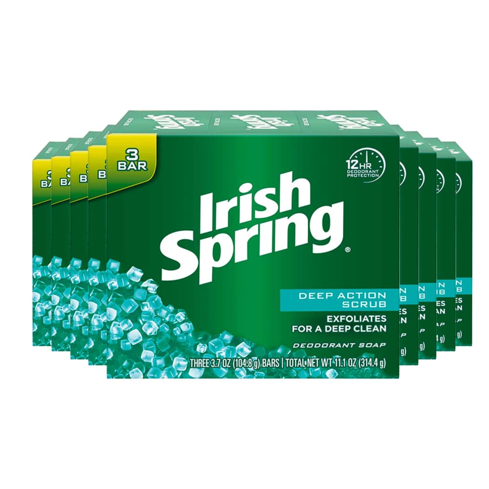 Irish Spring Deodorant Soap, Clean Scrub - 3 Bars 3.7 Oz - 18 Pack