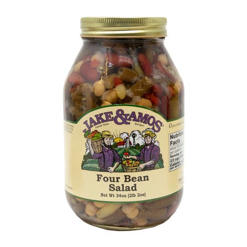 Jake and Amos® Four Bean Salad is an all natural, colorful, crunchy salad making it a country favorite. These beans are canned in a clear juice that allows them to retain their vibrant colors. Four Bean Salad is a healthy snack or a quick and easy meal in a jar.