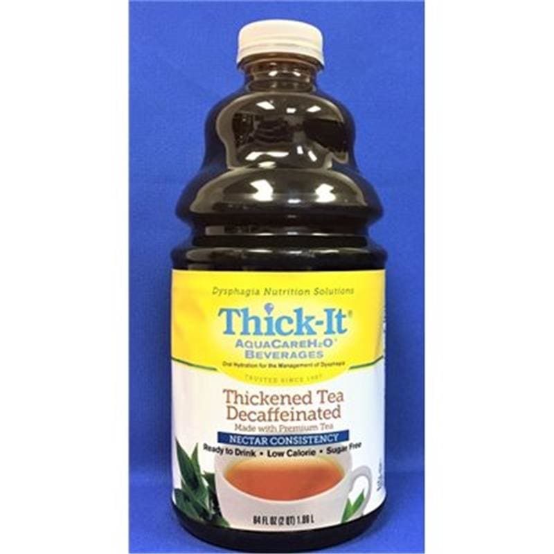 Thick-It Clear Advantage Thickened Decaf Black Tea, Nectar Consistency. Made with premium tea for a satisfying flavor, this formula is convenient, ready-to-drink and packaged in a resealable bottle. Serve hot, cold, or over ice. Mildly thick, nectar consistency. Contains none of the Big 8 Allergens. 64 fl. oz./bottle, 4 bottles/case.