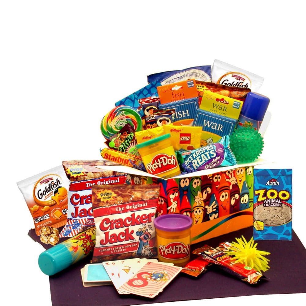 Don't all kids just wanna have fun? Let's give them what they want! These crazy fun crayons are itching to deliver their fun-filled activities and sweet treats to your favorite kid. The Kids Just Wanna Have Fun Care Package includes Crazy Crayons gift box, Play-Doh, two packages Cracker Jacks, Silly String, Rice Crispy Treats, Starburst fruit candies, Swirly Pop sucker, granola bars, fruit snacks, smiley face squishy stress ball, glow bright glow in the dark necklace or bracelet, animal cookies, two kids' card games (like Crazy 8's, Go Fish, Old Maid, etc.) and Chex snack mix.