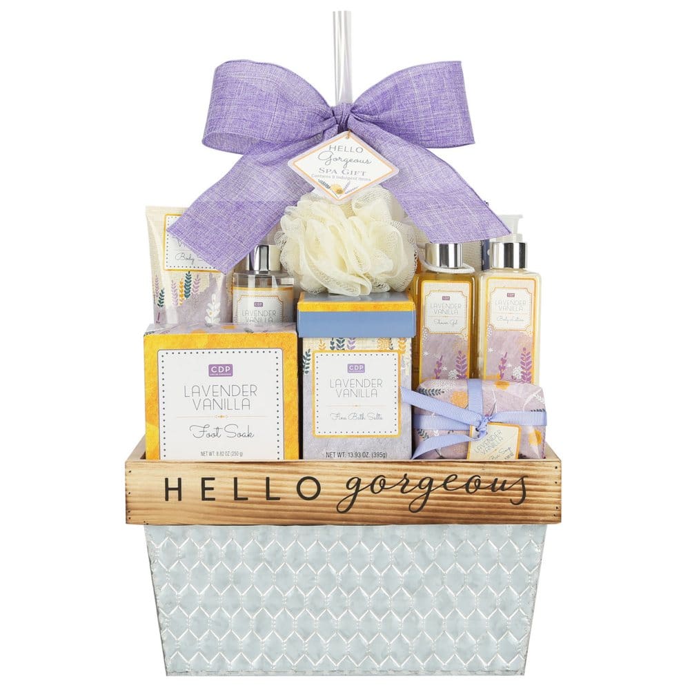 This Lavender Vanilla Spa Gift Basket is the perfect way to pamper anyone. With soothing lotions, soaps, body mist and more, this essential bath and body gift is a great idea for birthdays, thank you's or just because you or someone in your life could use a little relaxation.