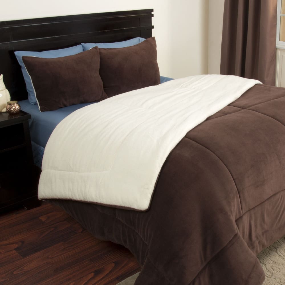 Lavish Home Sherpa/Fleece Comforter Set - Chocolate