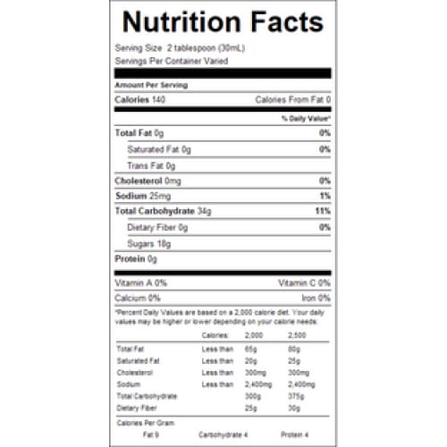 Ingredients: corn syrup, high fructose corn syrup, vanilla, salt.