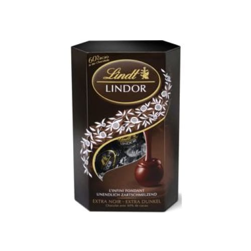 Black chocolate balls Lindt lindor with chocolate filling and a thin layer of chocolate on the outside. Lindor is the greatest pride of Lindt chocolate masters. The real secret of his success is the perfect and even filling filling. It can only be rated with gold - this is the case that the name lindt is combined with the French word for gold "or. Lindt is the highest quality Swiss chocolates. Well known and recognizable for its unique, unique taste and pleasant melting texture. Creating such chocolate is an art that requires deep knowledge, long -term experience and dedication to non -compromise quality.