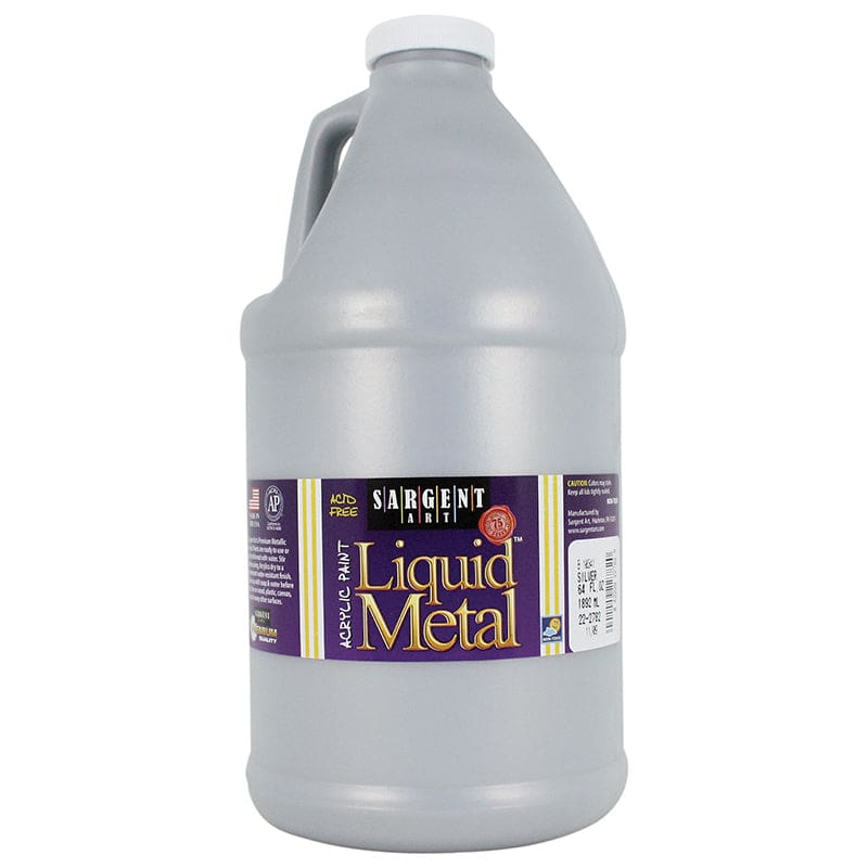Sargent Art® Liquid Metal™ Acrylic Paint is vividly colored, water-resistant after drying, and can be used on almost any surface. Ideal for hobbies, crafts, and classrooms. Provides good coverage and a permanent finish. Cleans up easily with soap and water before drying. Goes well with Sargent Art canvas, canvas boards and canvas pads. Non-toxic and conform to ASTM D 4236. Each bottle includes 64 oz. of paint.