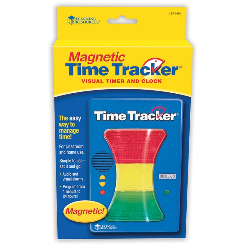 Our visual timer is now more visible than ever! Features clear, 3-color lighted display and simple-to-program alarms (1 second to 24 hours) plus it adheres to any magnetic surface! Alarms can be visual, audio or both. Use handy flip-out stand for tabletop use.