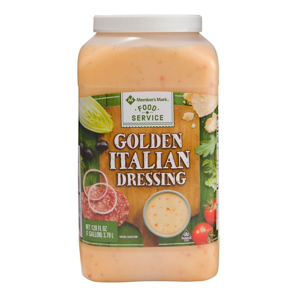Packaged for foodservice operators, Member's Mark Foodservice Golden Italian Dressing offers superior quality and taste. This creamy dressing has a slightly tart, savory and sweet flavor profile that comes from vinegar, garlic, onion, lemon juice, red bell peppers and other spices. Drizzle it onto salads, pasta and grilled veggies. You can even use it to marinate tenderloin, chicken thighs or pork chops. With 128 servings, this bulk salad dressing container is perfect for any large parties, catering or food business.