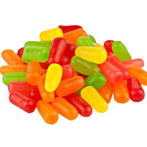 Ingredients: Sugar, Corn Syrup, Modified Food Starch, contains less than 0.5% of the following: Citric Acid, Malic Acid, Fumaric Acid, Sodium Citrate, Natural and Artificial Flavors, Dextrin, Confectioners Glaze, Carnauba Wax, Medium Chain Triglycerides, Red #40, Yellow #6, Yellow #5 (Tartrazine), Blue #1.