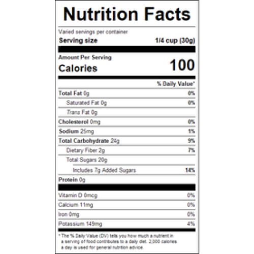 Ingredients: Diced Pineapple (pineapple, sugar, citric acid, sodium metabisulphite (preservative)), Diced Apricots (dried apricot, rice flour, sulfur dioxide [may contain pit or pit fragments]), Raisins (raisins, non-hydrogenated high-oleic sunflower oil), Golden Raisins (raisins, sunflower oil, sulfur dioxide [preservative]), Diced Dates (with dextrose [may contain pits or pit fragments]), Dried Cranberries (cranberries, sugar, sunflower oil), Dehydrated Papaya Chunks (papaya, sugar, color [FD&C yellow 6], sodium metabisulphite [preservative]), Diced Apples (apples, sodium metabisulfite [preservative]). Processed on equipment that also processes: Crustacean Shellfish, Egg, Fish, Milk, Peanut, Sesame, Soy, Tree Nuts (Almond, Brazil Nut, Cashew, Coconut, Filbert (Hazelnut), Macadamia Nut, Pecan, Pine Nut, Pistachio, Walnut) and Wheat.