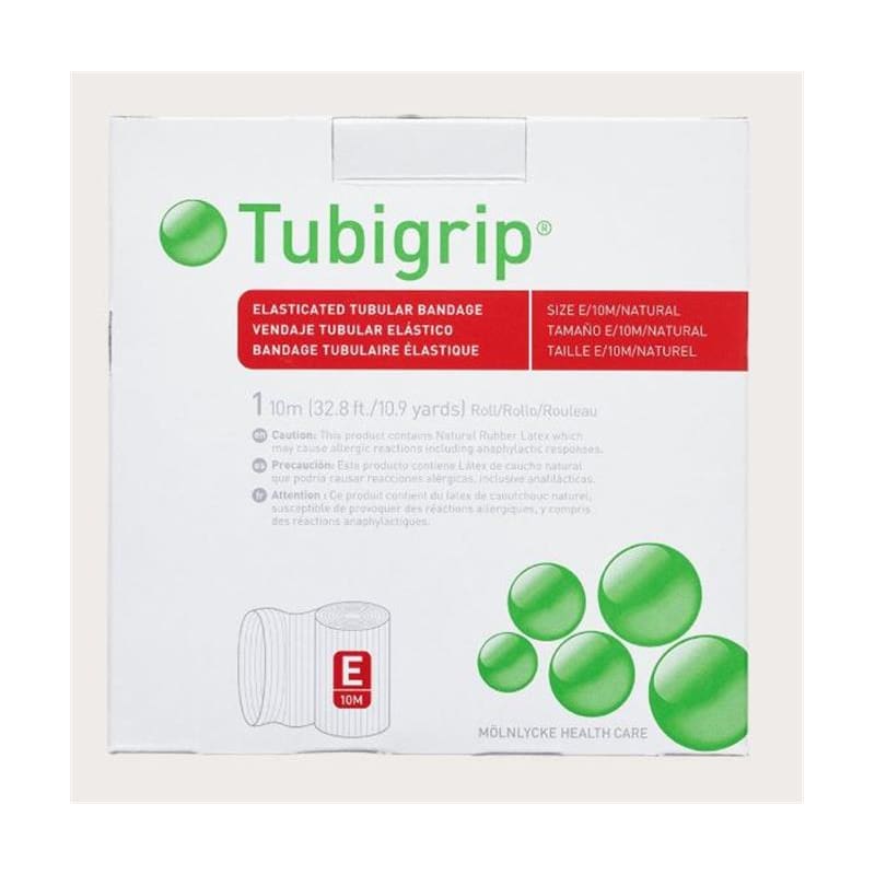 Molnlycke Tubigrip Multipurpose Elasticated Tubular Bandages. These bandages provide lasting, effective support, adjusting to the contours of the body and evenly distributing pressure. Fitting is quick and easy, and the bandage stays securely in place without pins or tapes. Can easily be reapplied after washing, without loss of effect. Size J, for small trunks, Length: 10 Meters, Color: Natural.